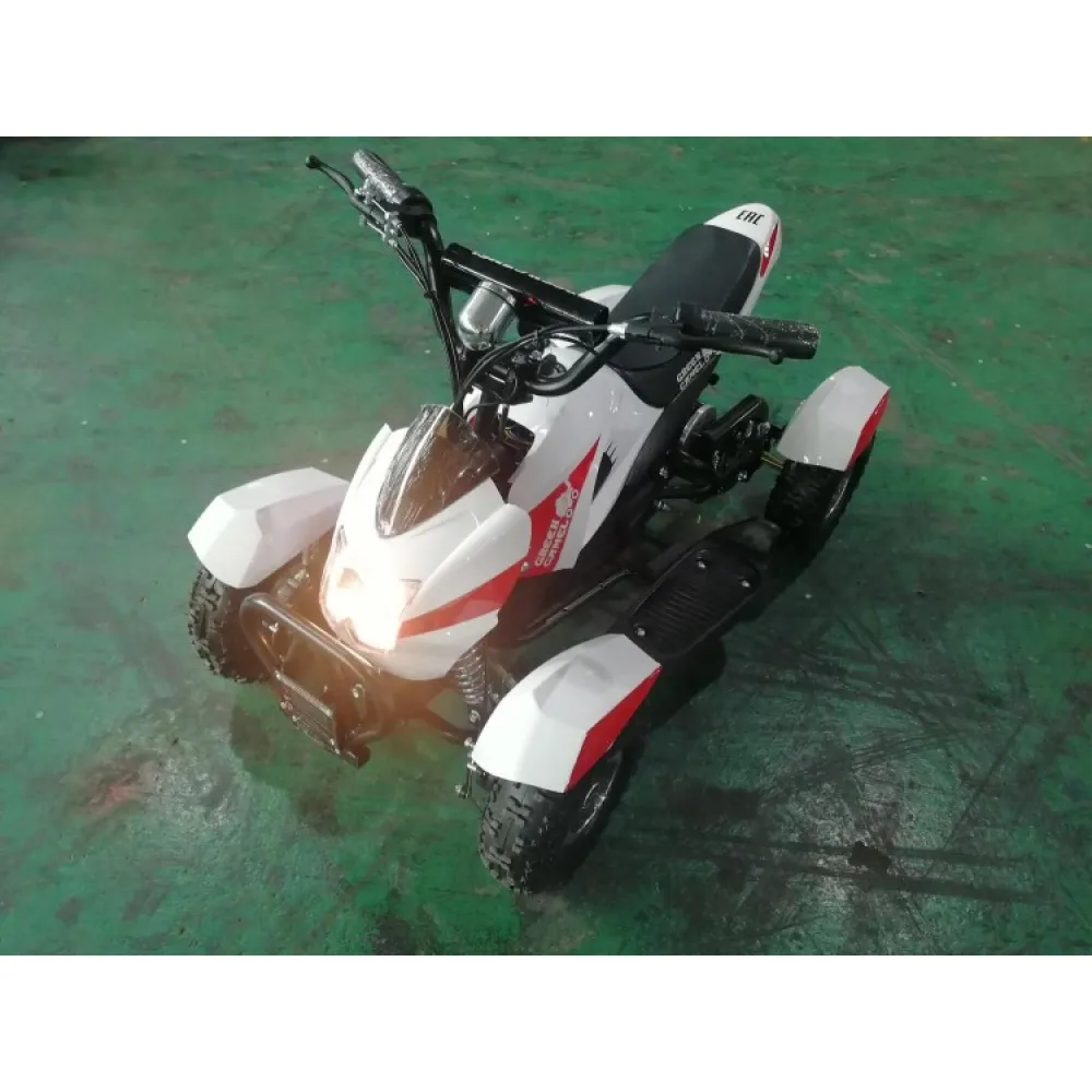 Модель рассчитана на юных райдеров начиная с 3-х летнего возраста с максимальным весом 60 кг. Электроквадроцикл оснащен надежным двигателем мощностью 350 Вт, позволяет достигать скоростных характеристик до 18 км/час. Гелевый АКБ рассчитан на 700 циклов заряд/разряд, что достаточно для преодоления расстояния до 15 км. Колесные диски и шасси с цепным приводом передачи предусмотрены производителем для повышенной комфортности и проходимости модели. Использование фирменных деталей при сборке обеспечивают абсолютную безопасность передвижения юного пользователя.