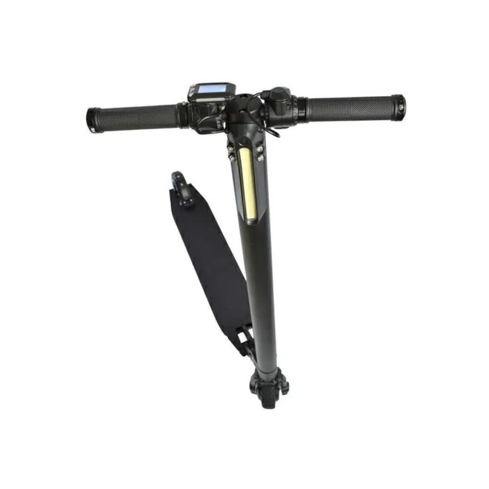 Особое внимание производитель обращает на рулевую стойку и платформу для ног. Руль оснащен прорезиненными анатомическими грипсами. Платформа – нескользящая, широкая. Складная конструкция модели трансформирует технику в удобные для переноски размеры. Оснащенность самоката жк-дисплеем позволяет отслеживать важные технические показатели, исключать форс-мажор в дороге.