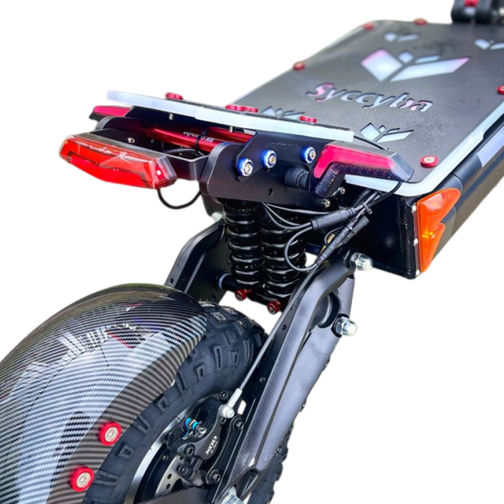 Электросамокат Syccyba Hunter — мощный полноприводный транспорт с пиковой мощностью до 6000 Вт, скоростью до 90 км/ч, пробегом до 100 км и нагрузкой до 150 кг, идеальный для экстремальной езды.​