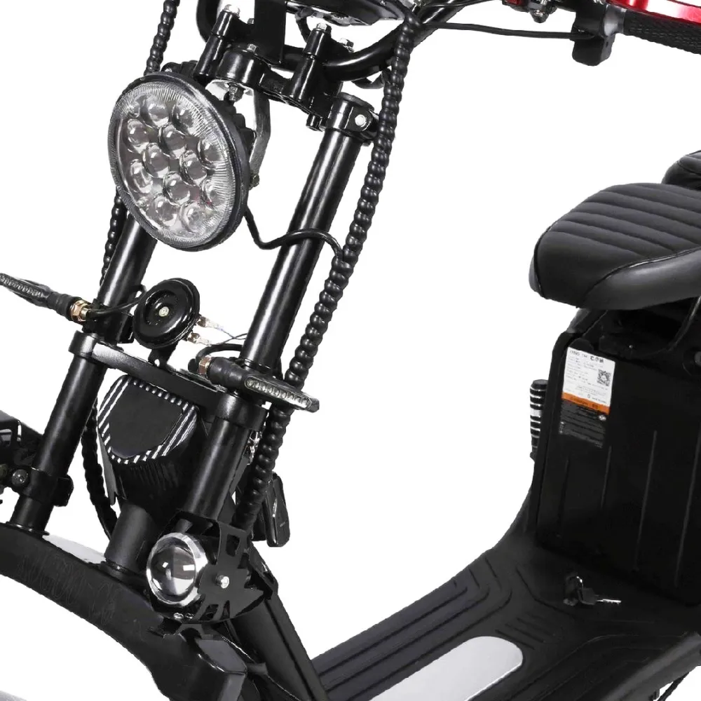 Электроскутер Citycoco Kugoo C6 – обновленный вариант бренда занимает лидирующие позиции в продажах. Брутальный кричащий дизайн заинтересовал райдеров-экстремалов и любителей рыбалки. Широкая отлично сцепляемые шины обещают отличную проходимость и отсутствие проблем в дороге. Техника создана для езды по бездорожью, не разочарует при преодолении небольших препятствий и путешествии по лесным тропинкам.