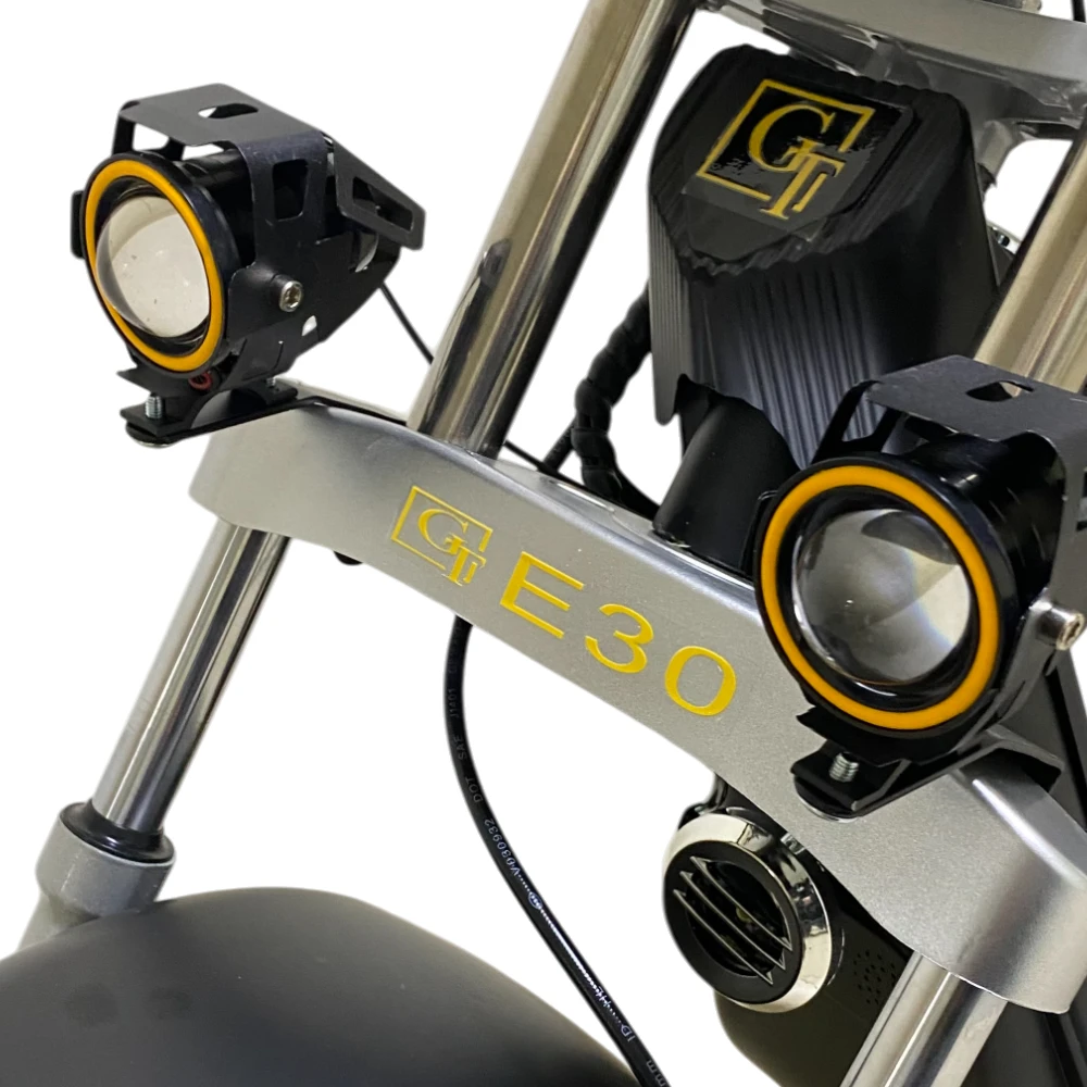Электроскутер Citycoco GT E30 в черном глянцевом цвете — это универсальное средство передвижения. С мощностью 3000W и задним приводом, он обеспечивает отличную динамику и маневренность на городских улицах. Благодаря двухколесной конструкции и надувным колесам диаметром 18 дюймов, скутер уверенно держится на дороге, что делает его идеальным для поездок по различным покрытиям.Съемный аккумулятор с напряжением 60V позволяет преодолевать расстояние до 50 км на одном заряде, что делает его идеальным вариантом для ежедневных поездок. Время зарядки составляет всего 5 часов, что обеспечивает быструю готовность к новым приключениям. Кроме того, в конструкции предусмотрено дополнительное место под аккумулятор, что увеличивает возможности автономной работы.Скутер весит 75 кг и может выдерживать максимальную нагрузку до 200 кг, что делает его подходящим для различных пользователей. Дисковые гидравлические тормоза обеспечивают надежную остановку, а большое мягкое сиденье и амортизаторы гарантируют комфорт даже при длительных поездках.Дополнительно, Citycoco GT E30 оснащен бортовым компьютером, зеркалами, звуковым сигналом, фарой и поворотниками, что повышает безопасность и удобство. Большая дека под ноги и прочная конструкция делают поездки еще более приятными.Электроскутер Citycoco GT E30 — это идеальное сочетание стиля, мощности и комфорта для тех, кто ценит удобство и скорость в городской среде.