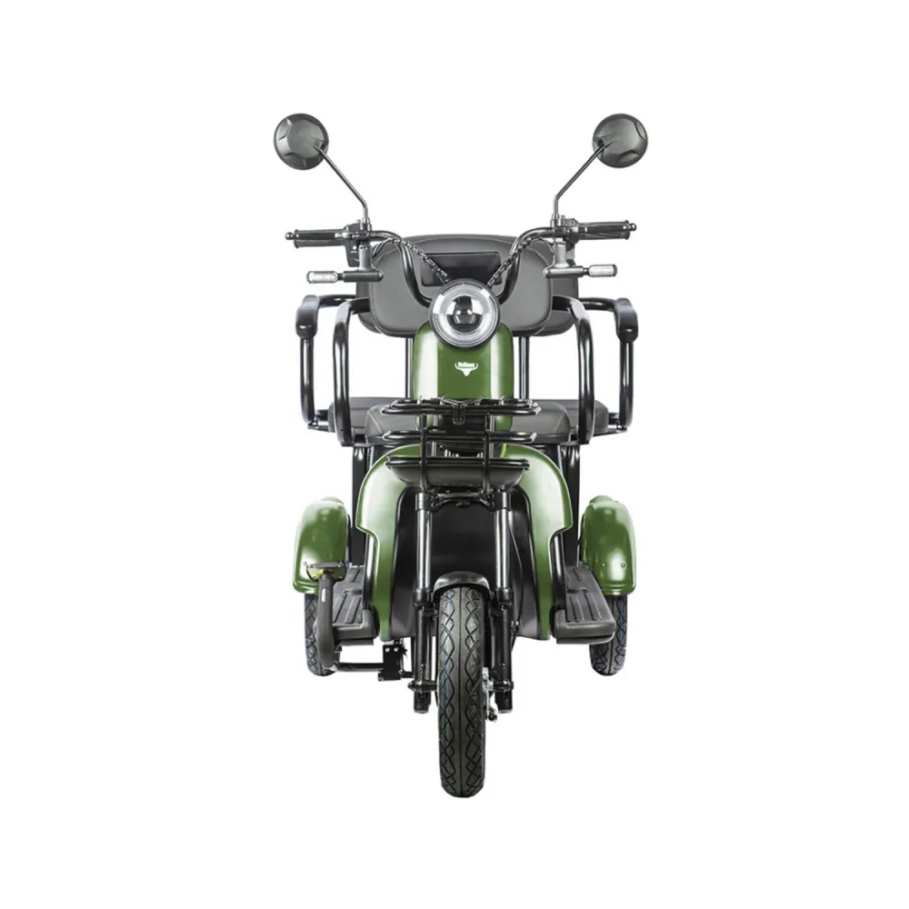 Наличие современной светодиодной фары, простых органов управления сделали трицикл востребованным и популярным на ранке товаров и услуг. Технические характеристики юркого трицикла представлены двигателем мощностью 800 Вт, способного развивать скорость до 25 км/час и преодолевать 45 км пути.  Контроль и безопасность трицикла обеспечены информационным дисплеем, предоставляющим данные о скоростных характеристиках и заряде батареи. Также трицикл укомплектован 2 брелоками сигнализации, что обеспечивает сохранность тс на паркинге.