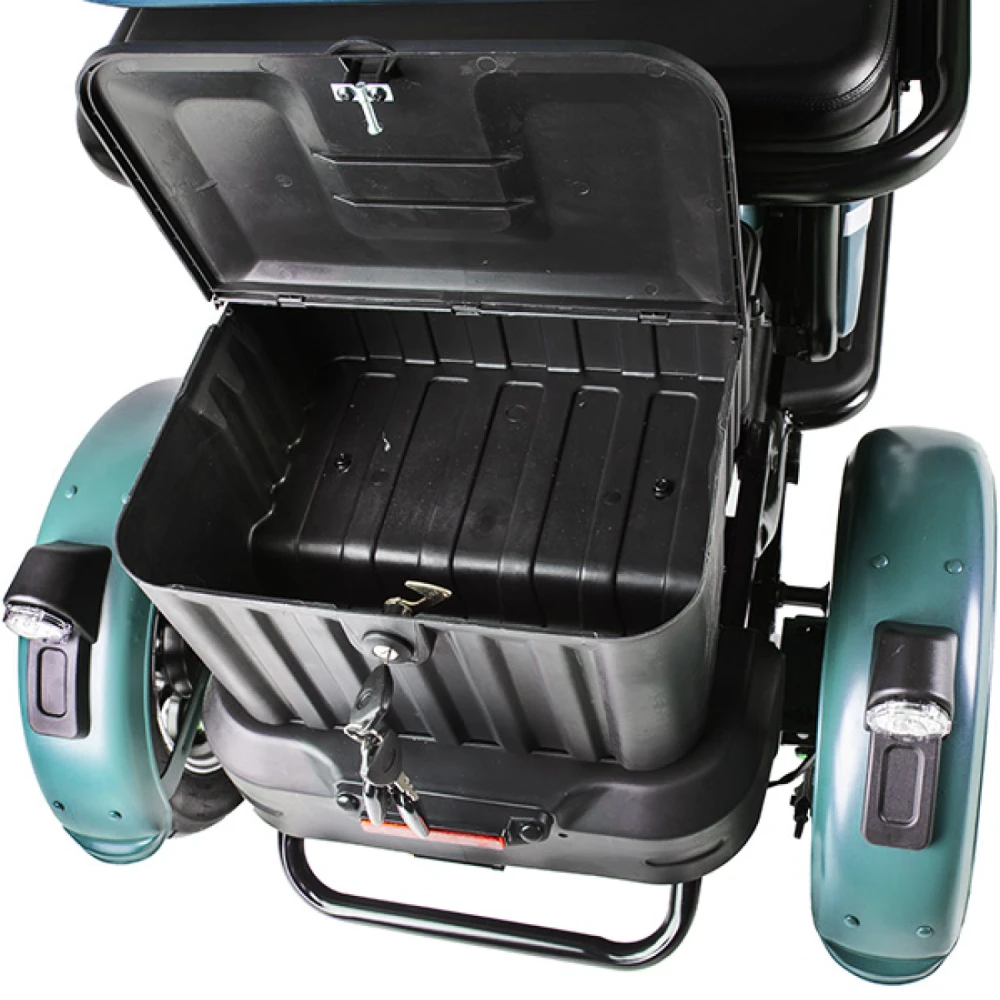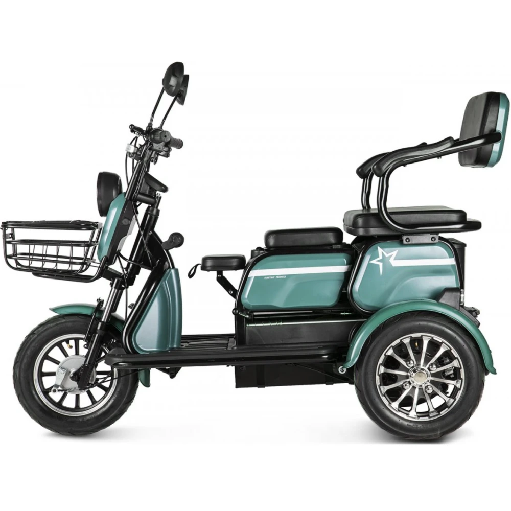 Трицикл Rutrike Рикша NEW 60V1800W красный – яркая привлекательная техника считается необходимостью для частного бизнеса и лиц с приусадебным хозяйством. Модель оснащена крышей, надежно защищена от негативного воздействия погодных факторов. Купить технику по демократичной стоимости быстро воспользоваться бесплатной консультационной поддержкой предлагает наш интернет-магазин. Трицикл оснащен 3 устойчивыми колесами параметрами 3,50-R12, надежно сцепляемыми с разными видами грунта. Угол наклона составляет 9 градусов. Техника оборудована электромотором на 650 Вт и емкой батареей, благодаря которым ездок может развить скорость до 25 км/час и преодолеть без дополнительной подзарядки расстояние до 30 км. Передняя подвеска оснащена усиленными гидравлическими амортизаторами. Задняя подвеска дополнена пружинами и рессорами. Характеристики обеспечивают плавность хода, исключают вибрации. Если вас заинтересовал трицикл, предлагаем сделать телефонный звонок нашему менеджеру. Мы поможет оформить заказ, проконсультируем по техническим параметрам, ознакомим с необходимо документацией. Наша техника лучшая в своем сегменте. качество подтверждено многочисленными отзывами пользователей.