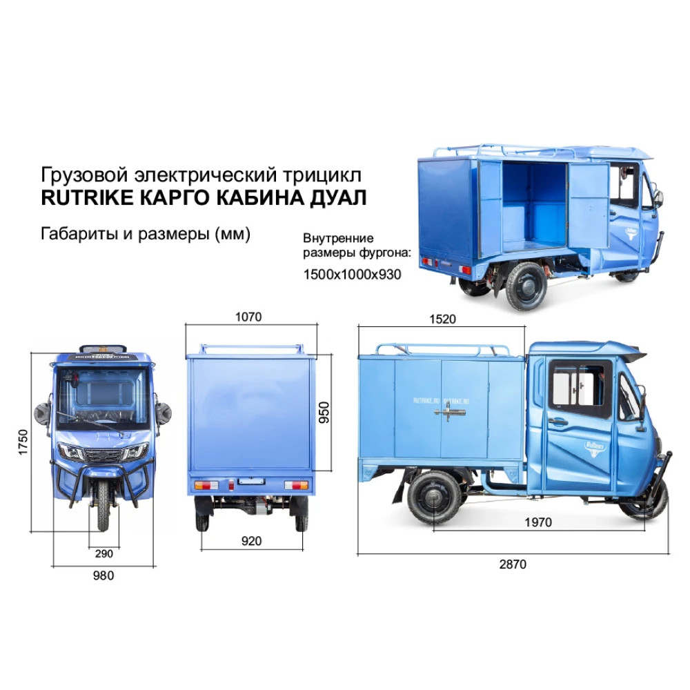 Грузовой электротрицикл Rutrike КАРГО Кабина Дуал темно-синий - это надежное и эффективное решение для ваших грузовых потребностей. Независимо от объема и веса груза, вы сможете осуществлять его доставку без проблем и с комфортом.
