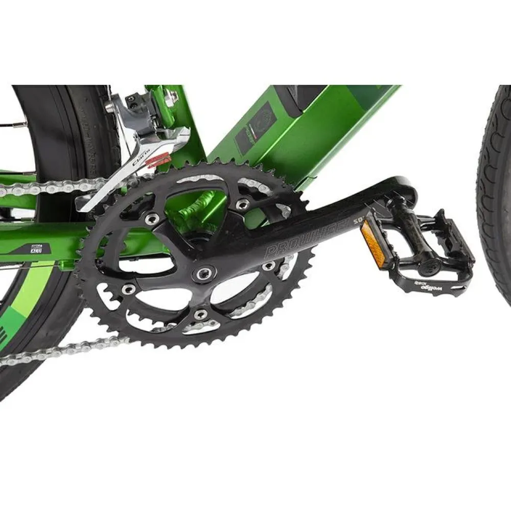 Электровелосипед Benelli E-misano, черно-зеленого цвета - техника с максимальной грузоподъемностью до 110 кг понравится взрослым райдерам и подросткам. Интересное сочетание цветов идеально подчеркивает вкус и индивидуальность пользователя. Езда на тс принесет райдеру хорошее настроение и позволит оздоровить организм, привьет желание заниматься спортом. Алюминиевая рама 23 кг обеспечивает повышенную маневренность и плавность хода. Наш интернет-магазин предлагает специальные акционные предложения и приятные покупки.