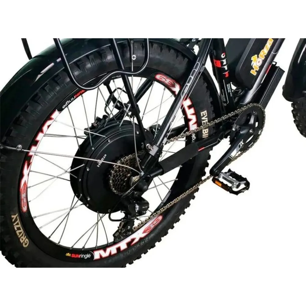 Модель массой 25 кг представлена цельной алюминиевой рамой, способной выдерживать максимальную грузоподъемность до 120 кг. Технические параметры электромотора составляют 1500 Вт. Максимальная скорость байка достигает скорости автомобиля – 55 км/час, а дальность дистанции на одной подзарядке до 85 км пути. Увеличить пробег можно за счет режима чередования. С такими параметрами производитель рекомендует заранее позаботиться о покупке средств безопасности для ездока.