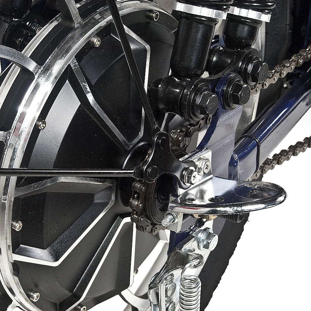 Электровелосипед оснащен двигателем мощностью 350 Вт, который вместе с литий-ионной батареей способны достигать скорости до 40 км/час и преодолевать 50 км пути. Батарея размещена в специальном блоке за подседельной частью, быстро съемная. Время полной подзарядки – 7 часов.