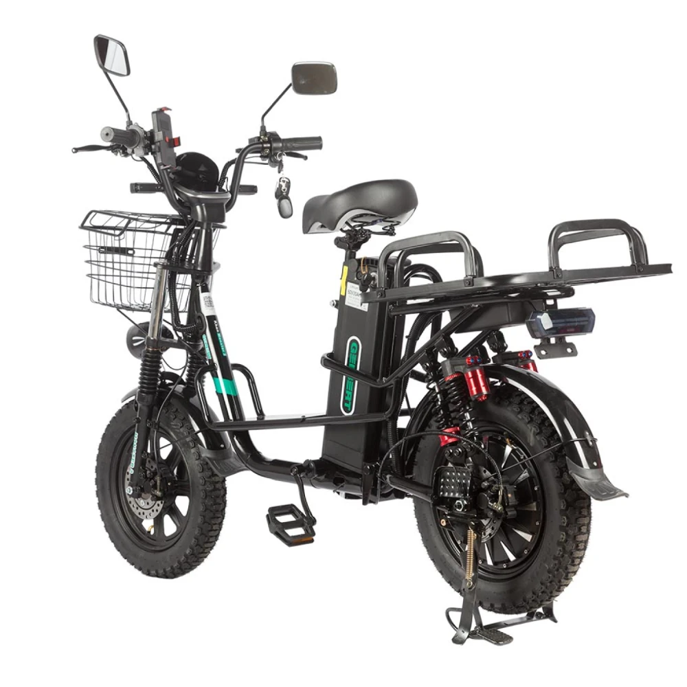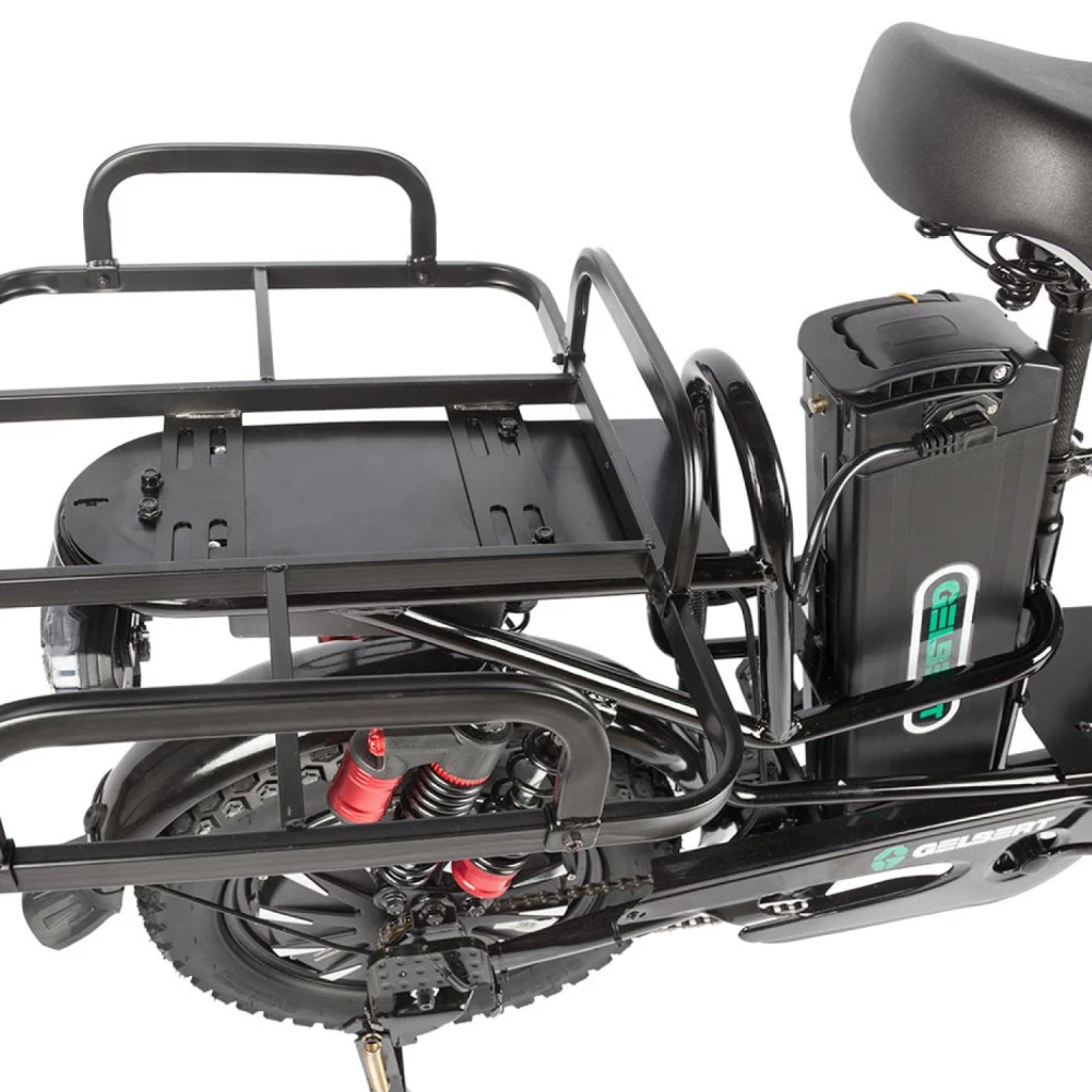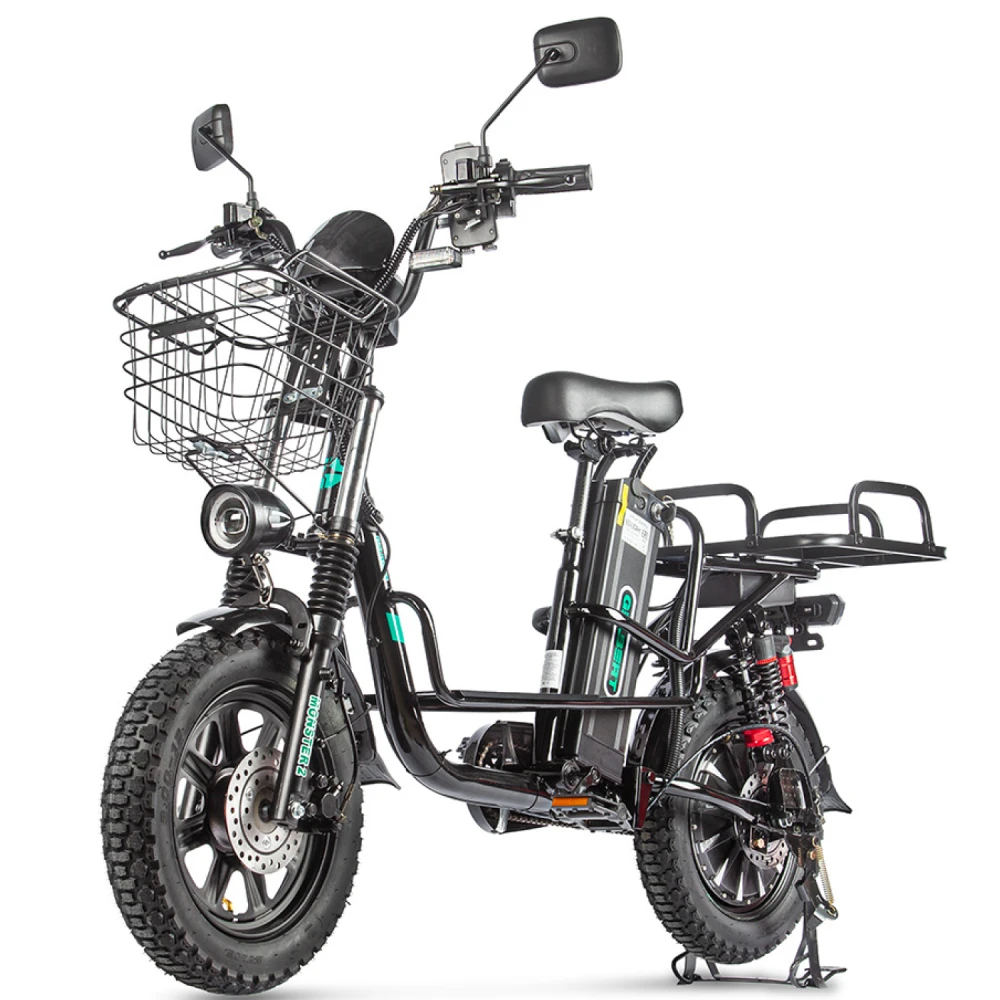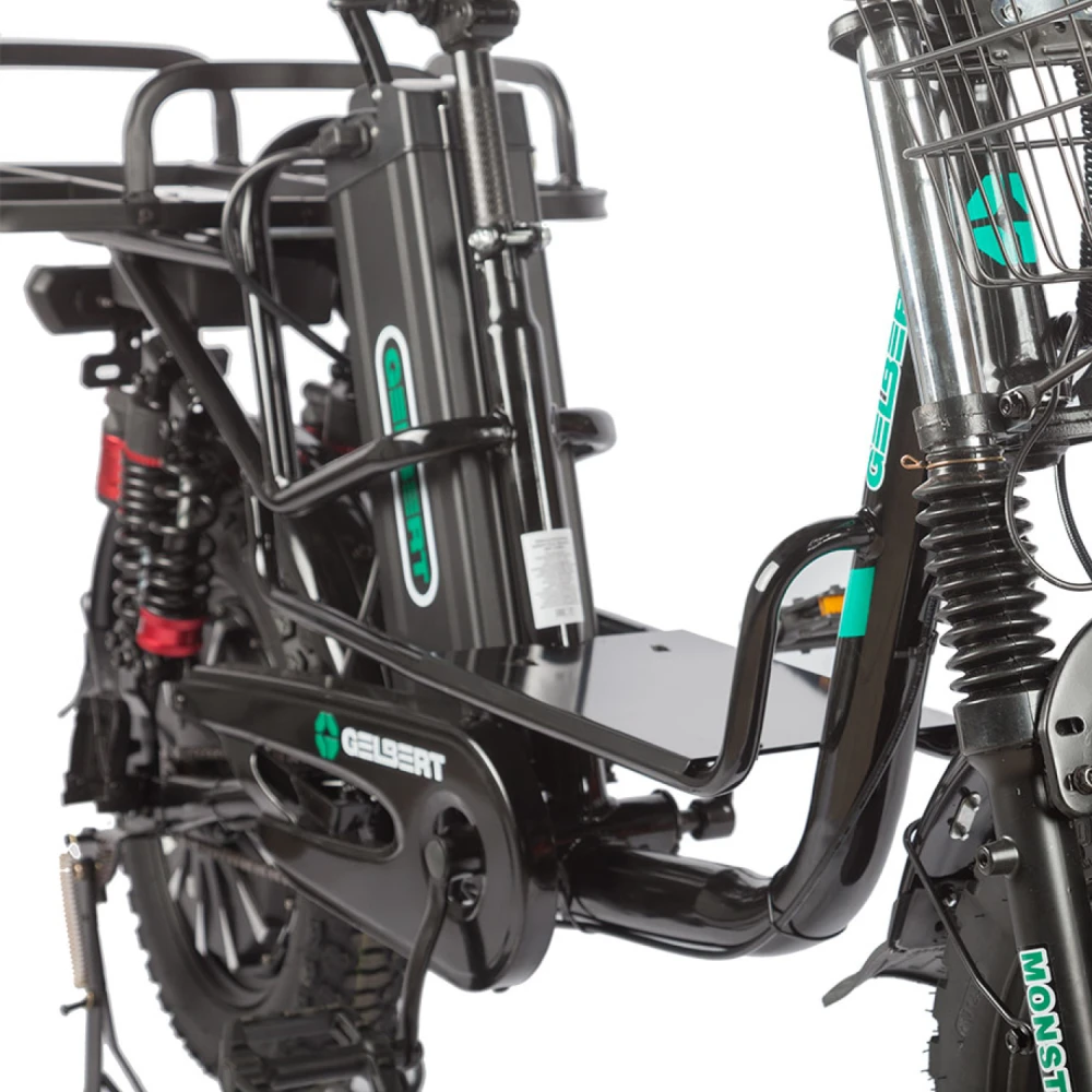 Электровелосипед Eltreco Gelbert Khan Monster 1 – это современное средство передвижения, сочетающее в себе продуманную конструкцию, передовые технологии и стильный дизайн для уверенных городских и пригородных поездок.Модель оснащена передним и задним амортизаторами, которые эффективно смягчают неровности дороги, обеспечивая плавность хода и комфорт даже на пересеченной местности. При заявленном максимальном пробеге до 100 км на одном заряде этот велосипед подходит для длительных поездок – конечно, реальные показатели зависят от веса райдера, рельефа местности, погодных условий и температуры окружающей среды.Безопасность обеспечивается за счет дисковых гидравлических тормозов, которые гарантируют надежное и своевременное торможение в любых ситуациях. Легкий вес в 57 кг позволяет легко маневрировать, а максимальная нагрузка до 150 кг делает модель универсальной для разных категорий пользователей.Двигатель мощностью 240 W, размещенный в задней части, обеспечивает эффективное ускорение и оптимальное распределение энергии, что способствует стабильной работе в условиях городской среды. Электровелосипед оборудован аккумулятором с емкостью 21 Ah и рабочим напряжением 60 V, что гарантирует долгий срок службы батареи и надежную работу даже на длинных маршрутах.Габариты в собранном состоянии – 1700×1150×800 мм – обеспечивают удобное расположение для водителя, а использование качественной стали в конструкции гарантирует долговечность и надежность всей системы. Дополнительное оснащение включает зеркала заднего вида, которые повышают безопасность, а встроенные передние и задние габаритные фары обеспечивают отличную видимость в условиях недостаточной освещенности.Стоит отметить, что данная модель не является складной, что подчеркивает ее прочную и стабильную конструкцию, рассчитанную на долгосрочную эксплуатацию. Электровелосипед Eltreco Gelbert Khan Monster 1 – это оптимальное решение для тех, кто ищет сочетание высоких технологий, надежности и комфорта в одном устройстве.