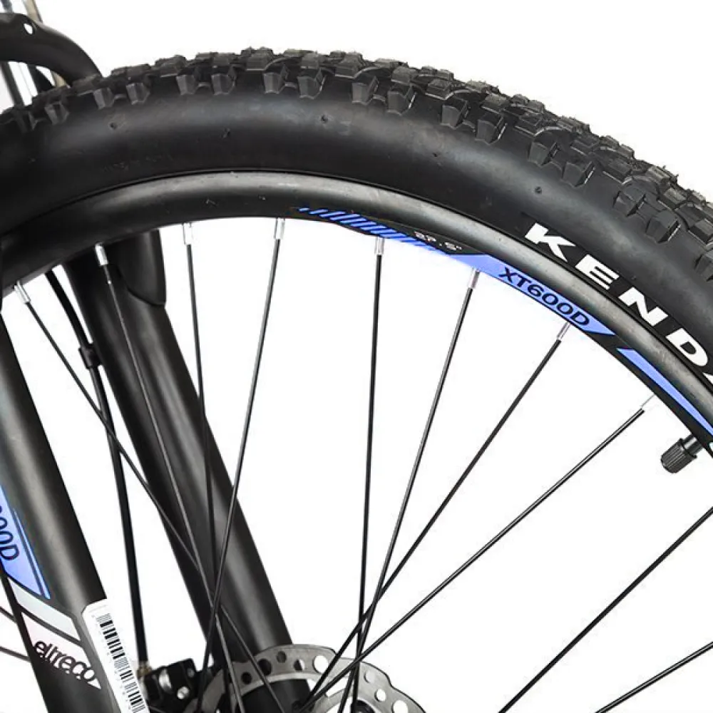 Велогибрид Eltreco XT 600 – доступная и востребованная на рынке электровелосипедов модель. В сравнении с предыдущими вариантами имеет облегченную алюминиевую раму, сглаженную геометрию, в которой нельзя найти острых углов. черно-синяя модель велосипеда сочетает в себе роскошь и многофункционал. Общий вес велика – 20 кг. При разработке модели производитель использовал оригинальные брендовые запчасти, что сделало срок службы техники длительным. Технические особенности электровелосипеда следующие: