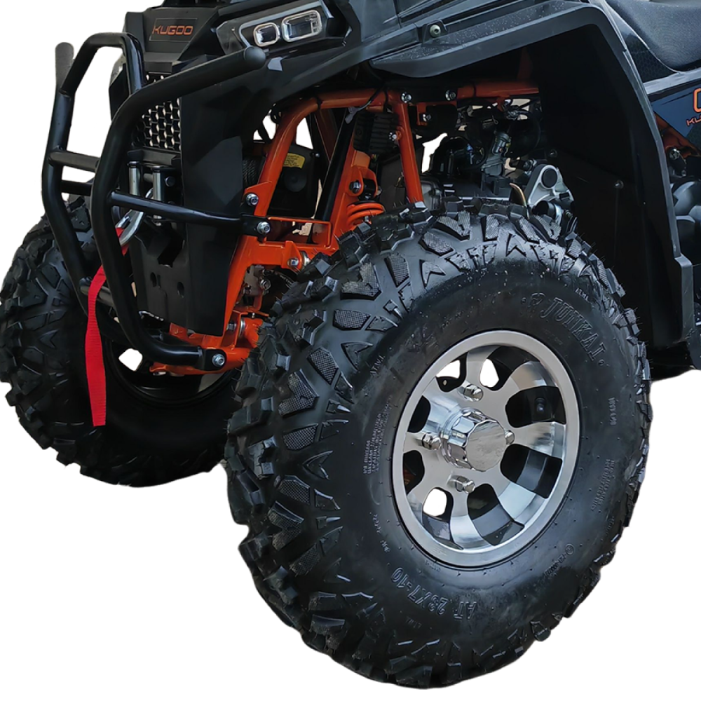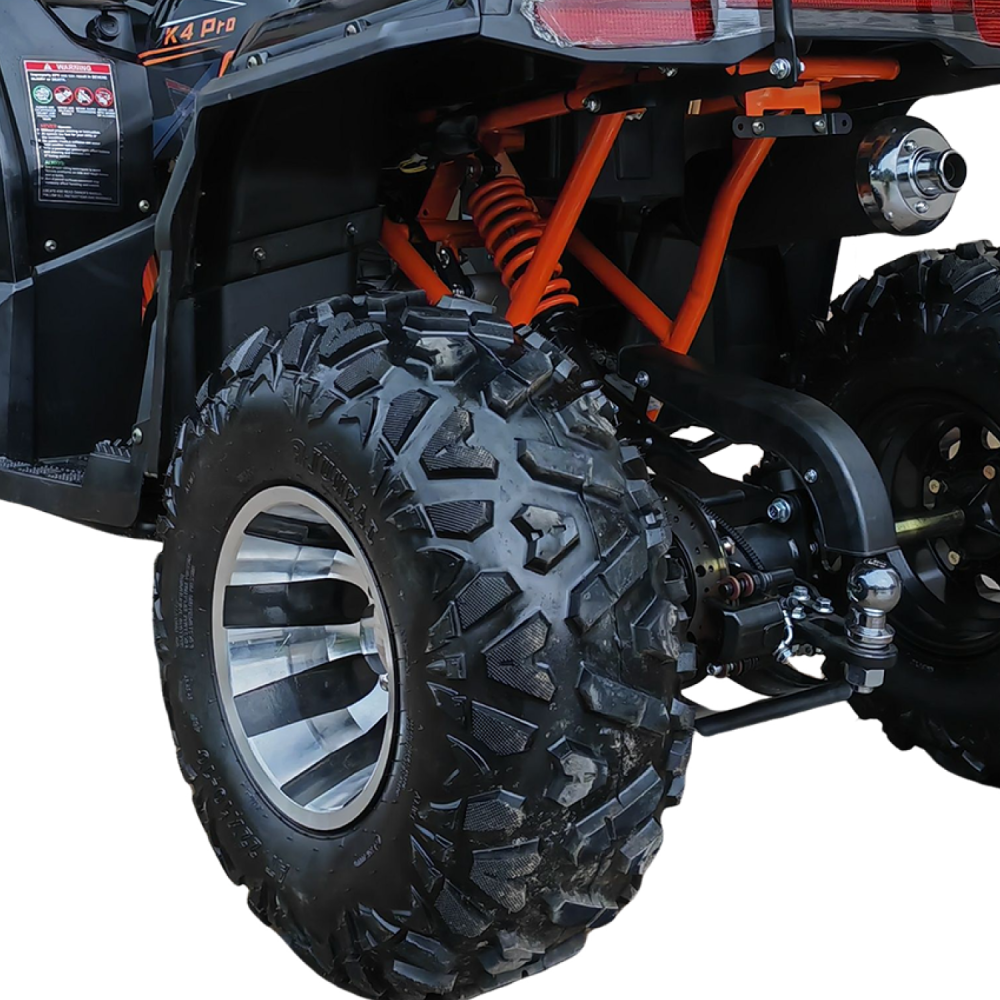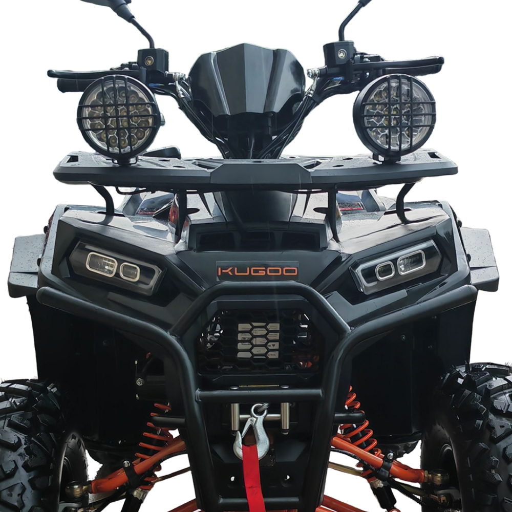 Kugoo K4 PRO — это не просто квадроцикл, а универсальный инструмент для тех, кто ценит надёжность, скорость и проходимость. Построенный на прочной раме, с высоким клиренсом 160 мм и внушительным дорожным просветом, он готов к покорению пересечённой местности, песчаных дюн, лесных троп и каменистых подъёмов.