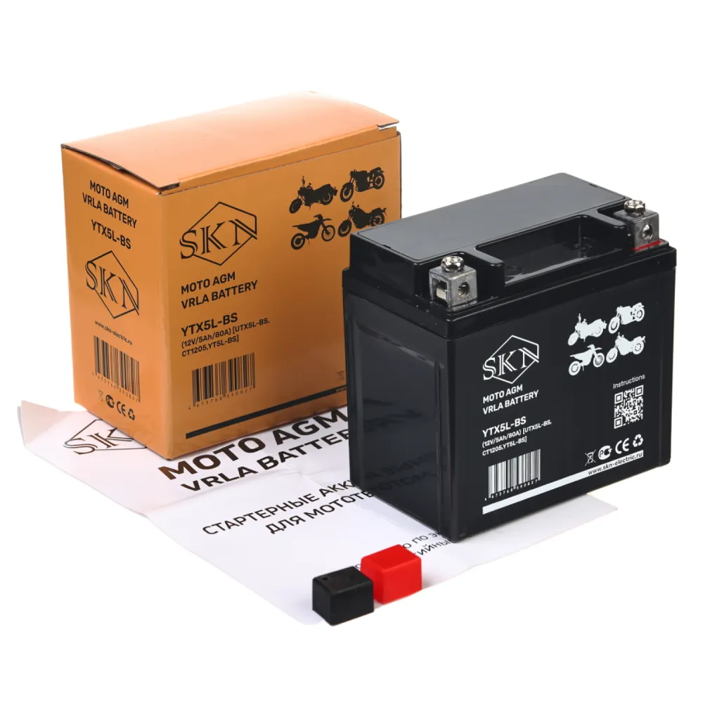 Аккумулятор стартерный для мототехники SKN YTX5L-BS (12V/5Ah/80A) [UTX5L-BS, CT1205, YT5L-BS]