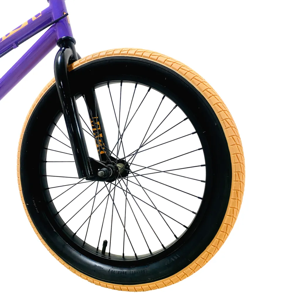 20-дюймовая колесная часть оснащена надежными покрышками, отлично сцепляемыми с разными поверхностями, накатистыми и послушными. В совокупности с другими элементами управления райдер может рассчитывать на максимальный разгон, что важно для качественных прыжков. Торможение проводится с помощью брендовых тормозов. Основной рычаг управления размещен на видимой часть руля.